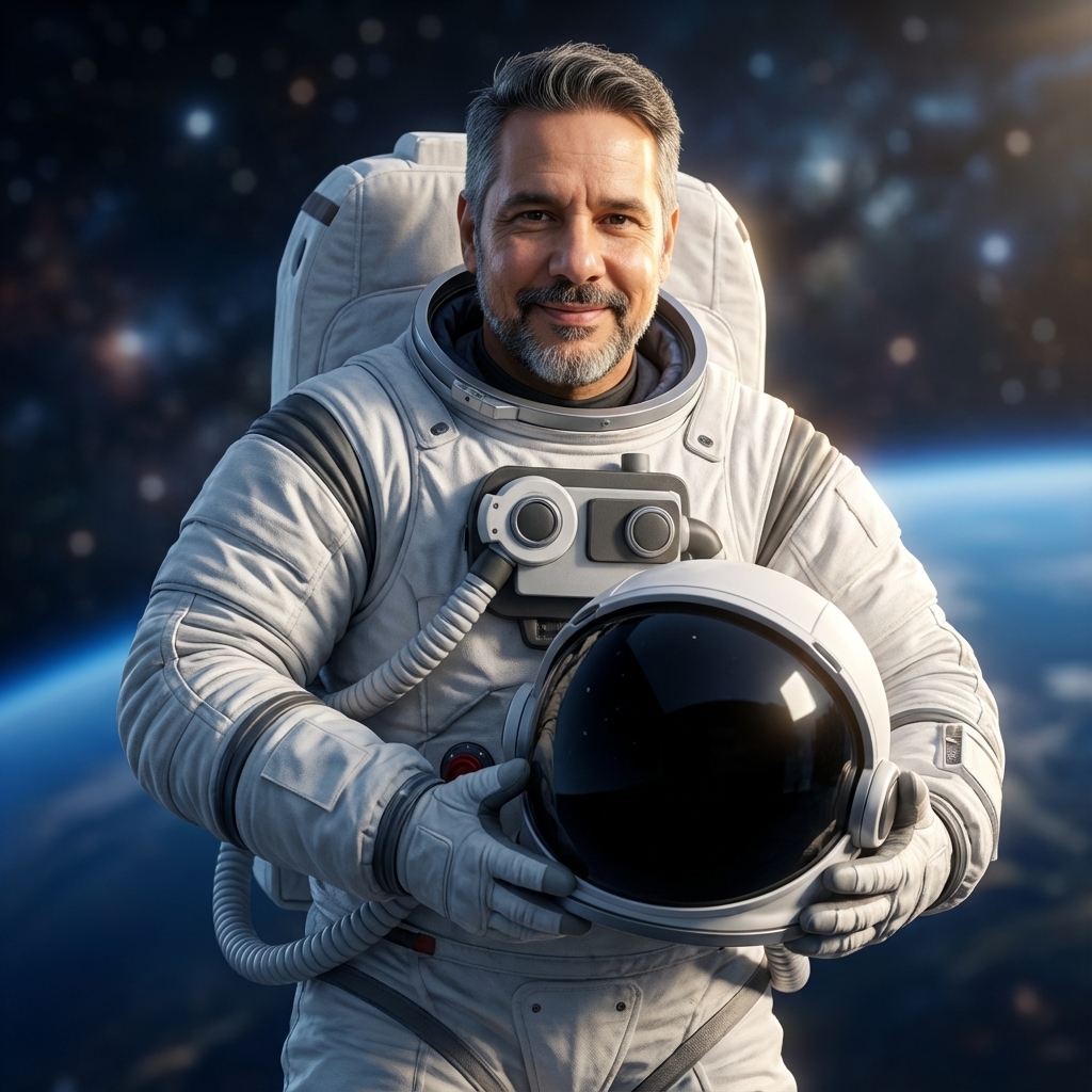 Fantasiado de astronauta.(IA)